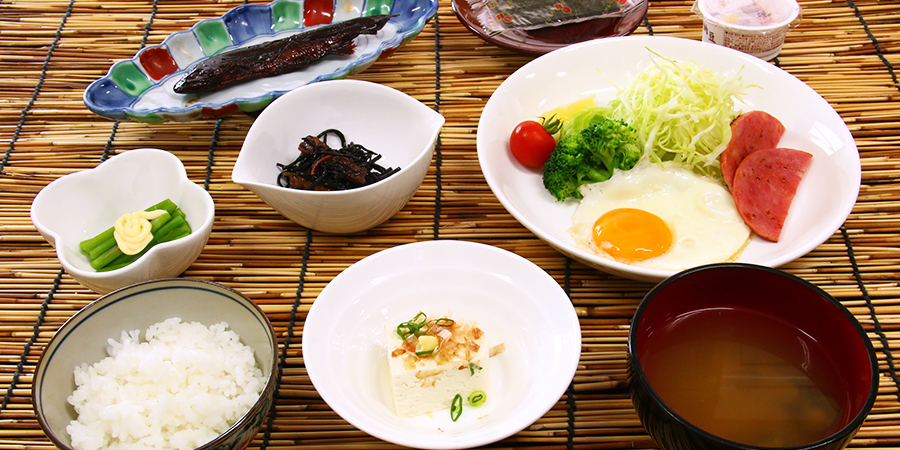 朝食は和食をご用意しております。バランスの取れた和食は、一日の活力になりますよ。